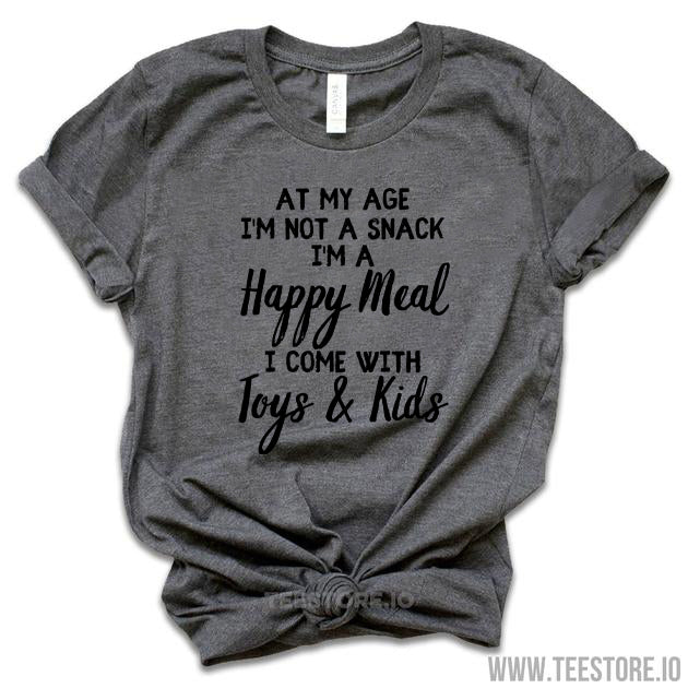 At My Age Im Not A Snack Im A Happy Meal Tshirt Funny Sarcastic Humor Comical Tee